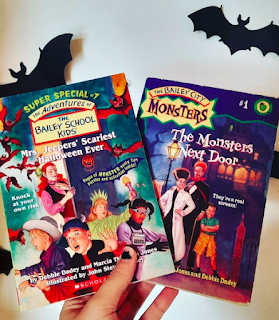 Four: Mrs. Jeepers' Scariest Halloween Ever by Debbie Dadey and Marcia Thornton Jones, The Monsters Next Door by Debbie Dadey and Marcia Thornton Jones, Ma and Pa Dracula by Ann M. Martin and Dawn and the Halloween Mystery by Ann M. Martin